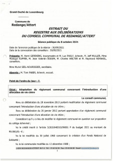 Règlement communal concernant l'introduction d'une allocation de vie chère